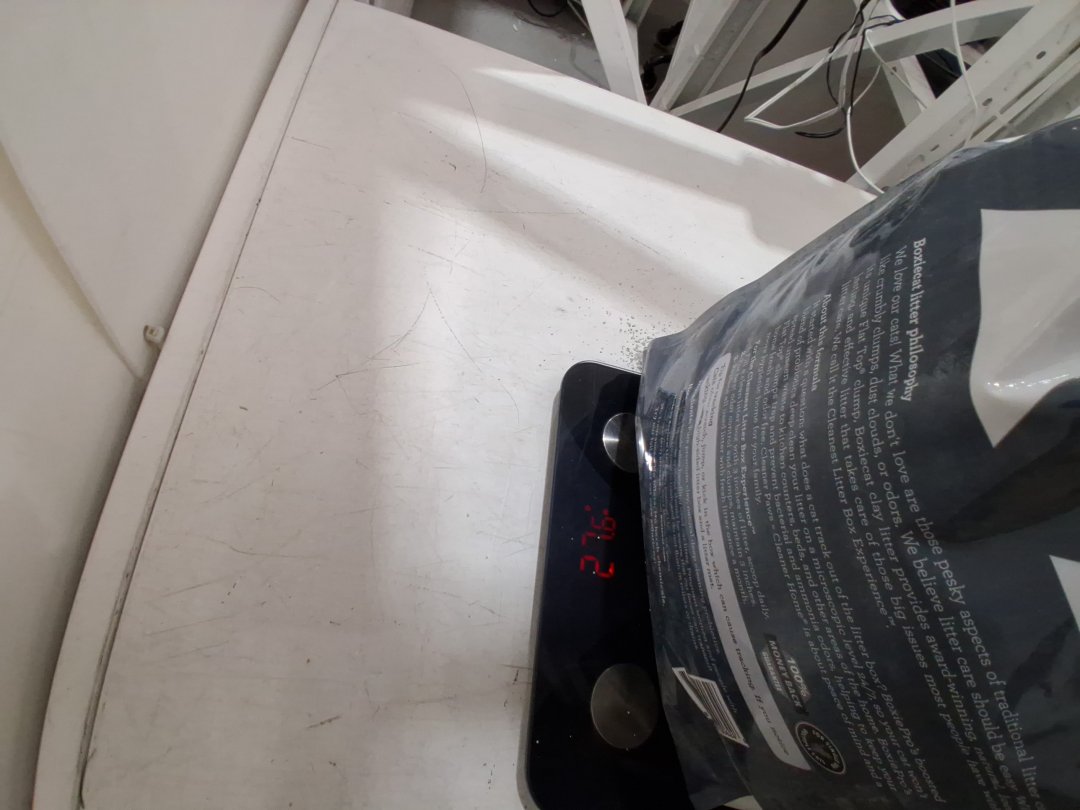 The item arrived slightly ripped from shipping and was reweighed at 27.6 lbs.