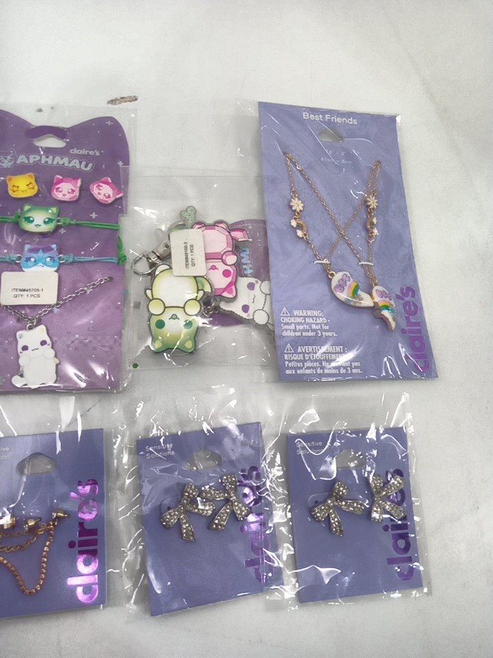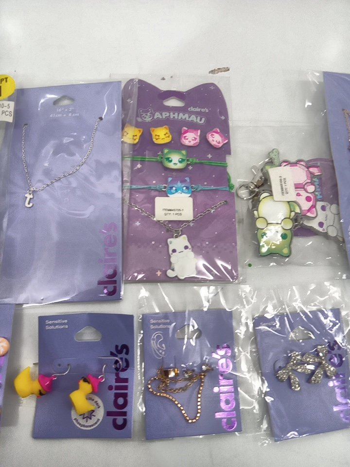 10 ASSORTED CLAIRE'S JEWELRY - EARRINGS /NECKLACES/keychain