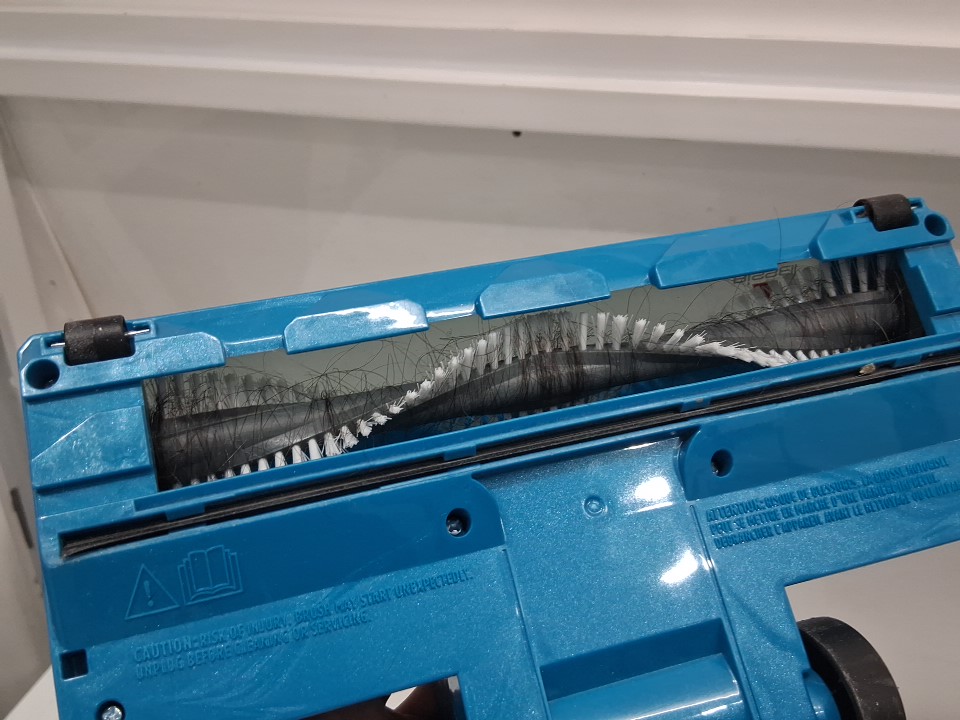 Item has minor dust/debris in the main container, some hairs stuck around the roller brush from previous gentle use, see photos.