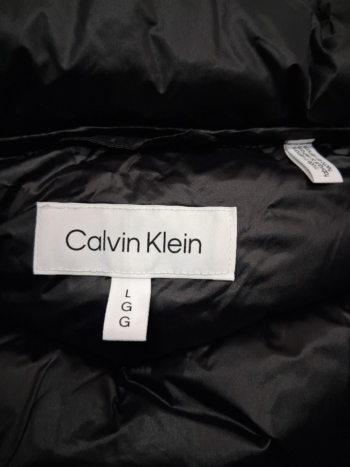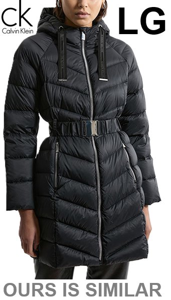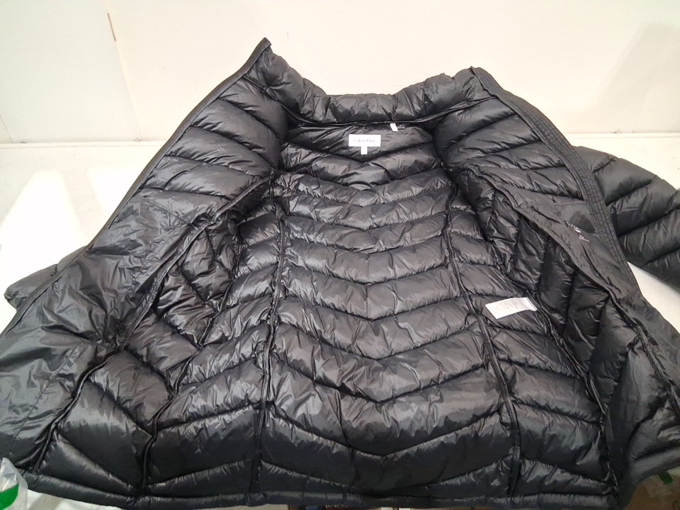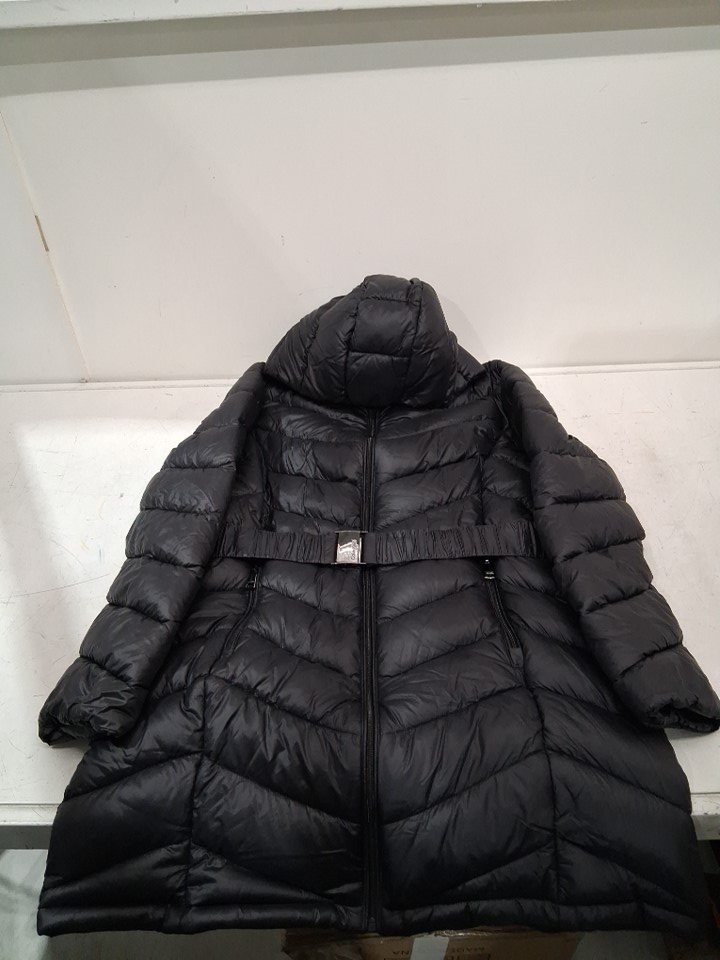 women's Calvin Klein hooded puffer jacket with belt - large - black