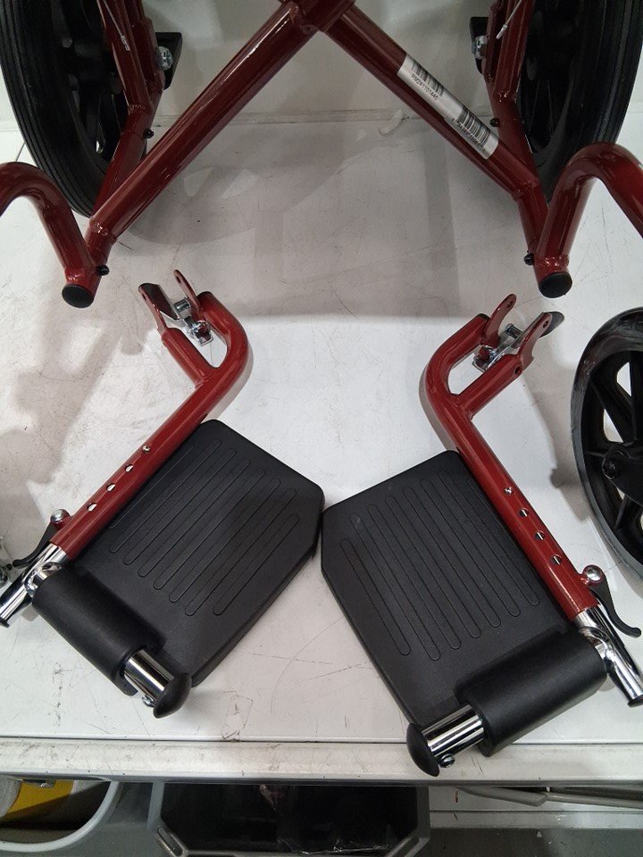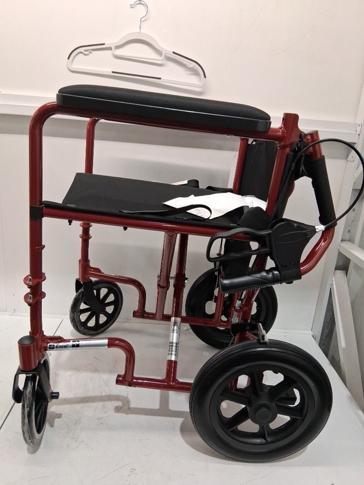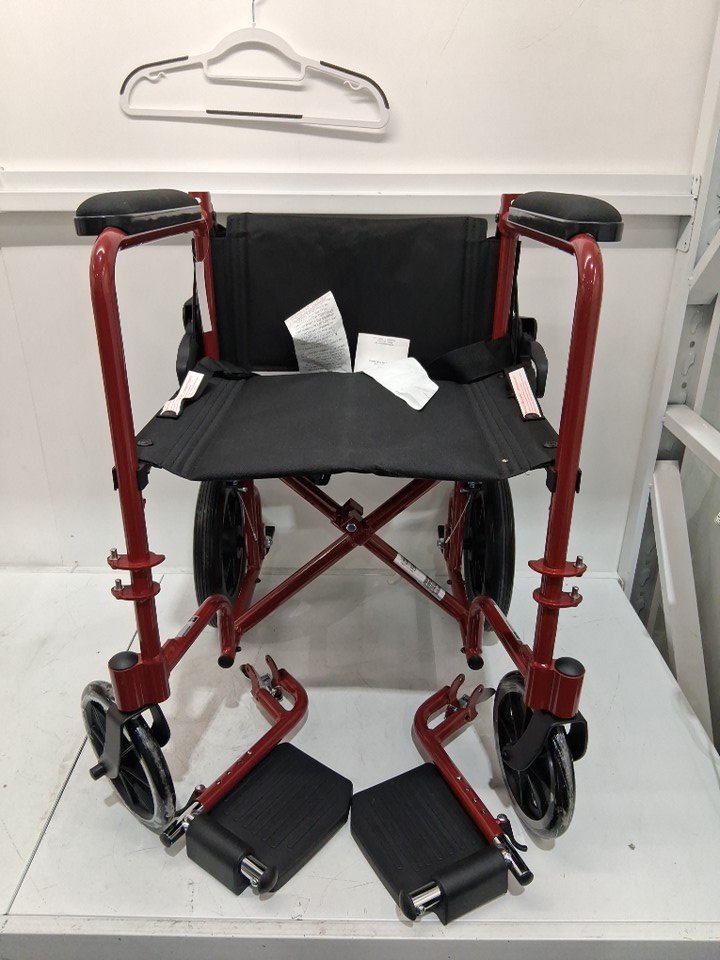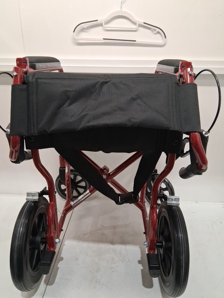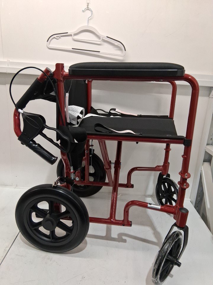 MEDLINE BASIC ALUMINUM TRANSPORT WHEELCHAIR - 19" - 12" REAR WHEELS WITH BRAKES - 300lbs capacity - RED (MODEL: MDS808210ARE)