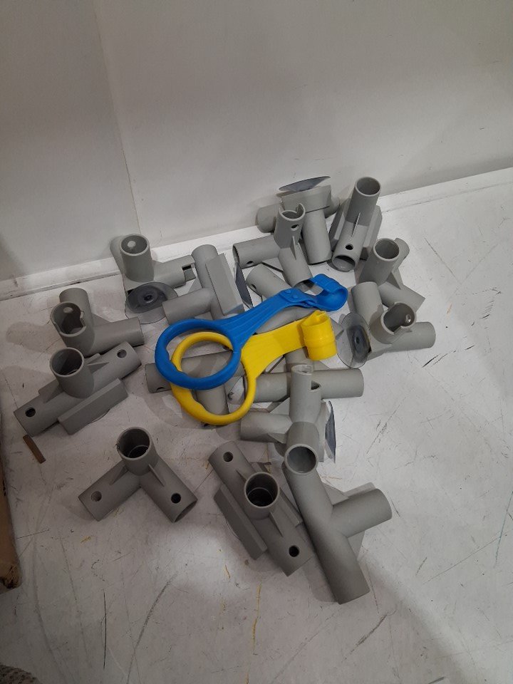 Signs of light use, some light marks/staining on covers and crumbs. Some plastic connectors have scuffs/scratches on them