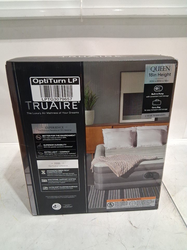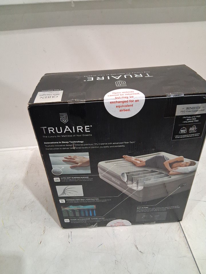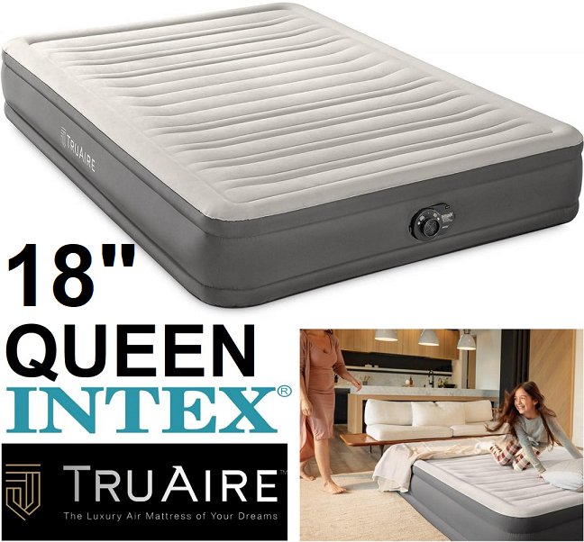 INTEX TRUAIRE luxury fiber tech multizone support inflatable air mattress with built in pump - queen - 18" height - grey (model: 64023e)