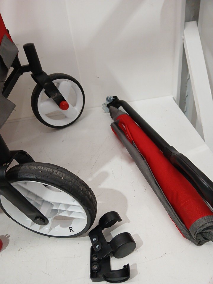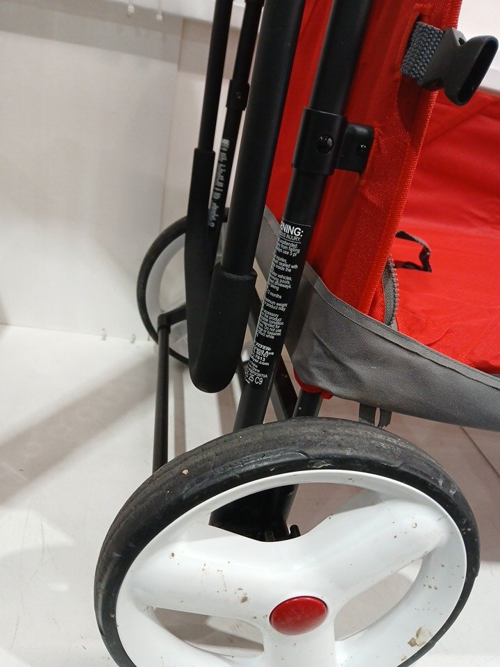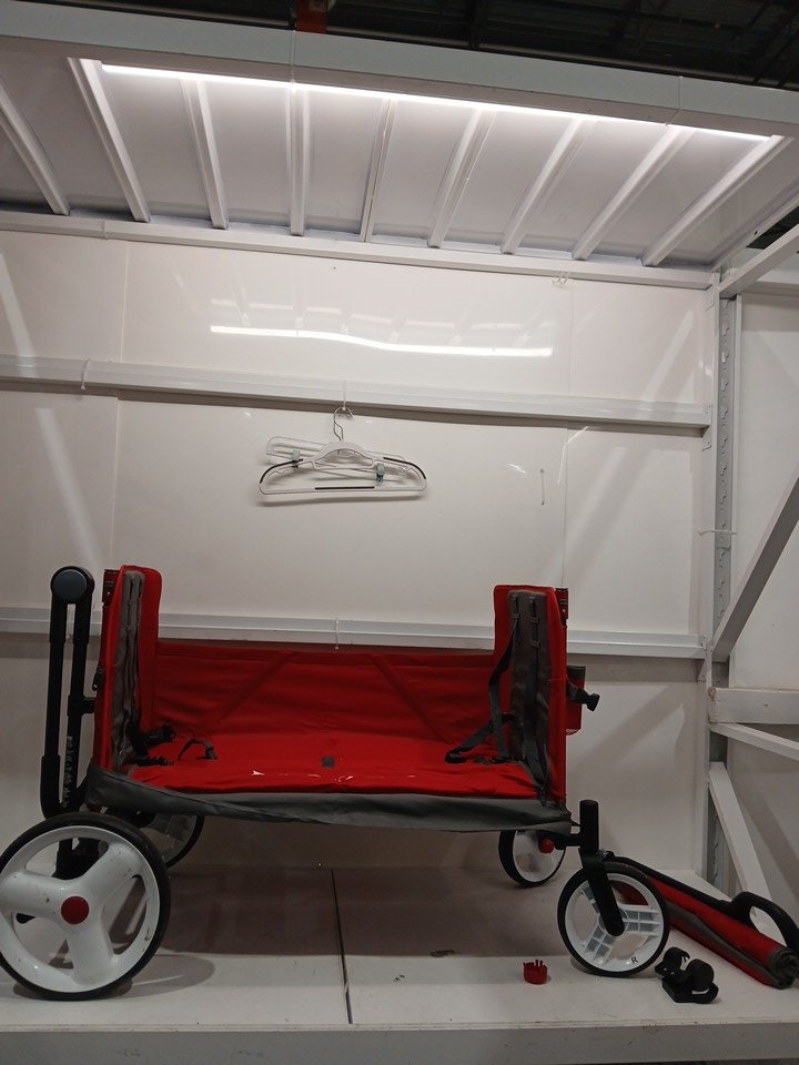 The wheels show signs of use and there are some spots inside the wagon.