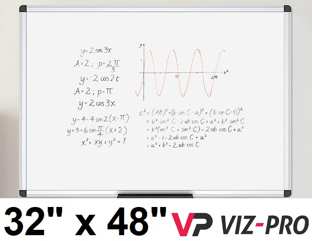 viz-pro dry erase magnetic whiteboard - 48" x 32" - silver/white (model:WB1290L)