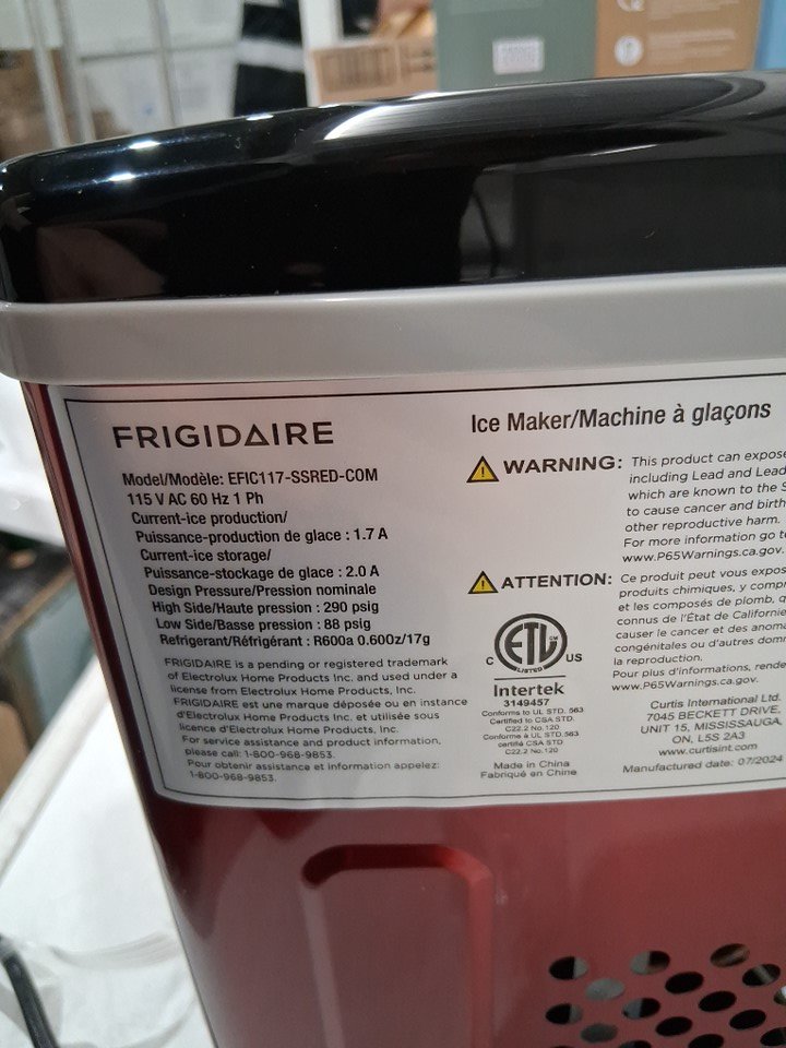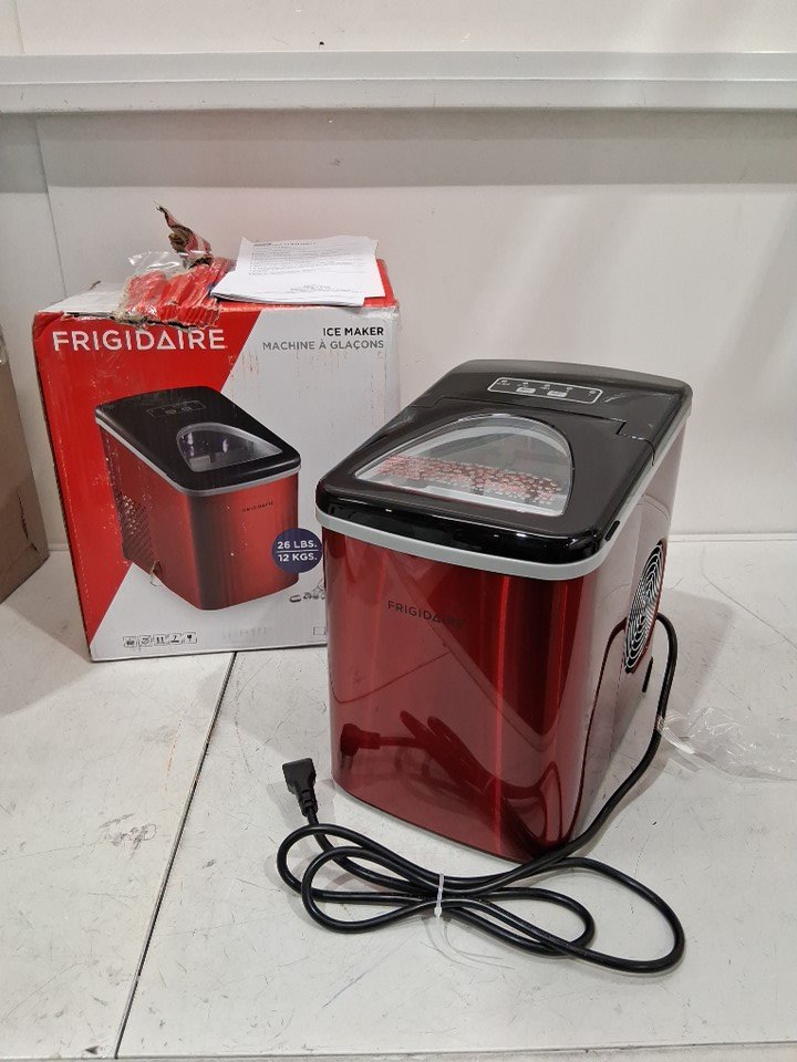 FRIGIDAIRE COMPACT ICE MAKER - MAKES 26LBS/DAY - metallic RED (MODEL: EFIC117-SSRED-COM)