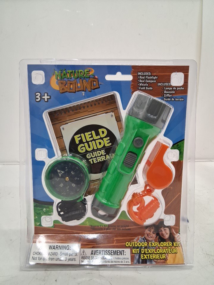 4PC Kids Nature Bound Outdoor Explorer Kit with Flashlight, Compass, Whistle, and Field Guide - Multicolor