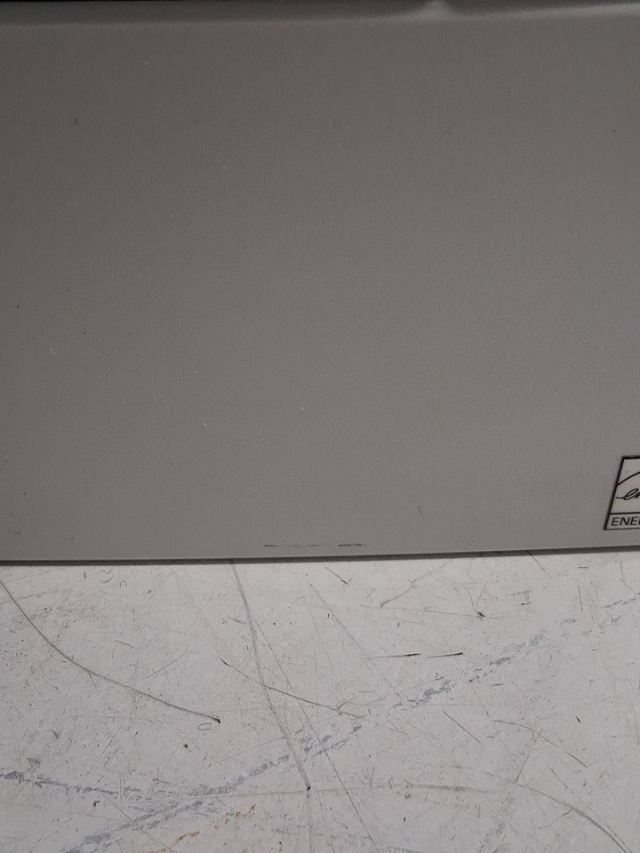 There is 3 tiny black scuff marks on the front side of the printer due to the shipping process, everything else looks good. Tested for basic power.