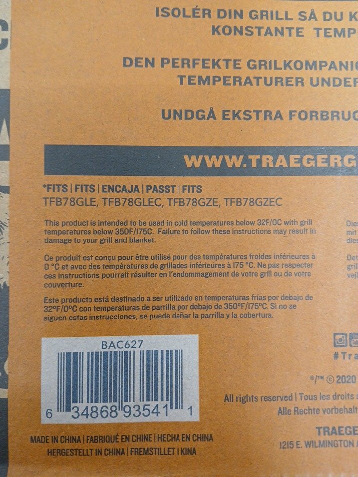 Traeger Pro 780 Insulation Blanket Cover - Grey (Model: BAC627)