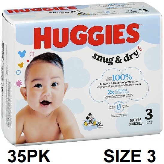 35PK Huggies Snug & Dry disposable Diapers - Size 3 (16-28LBS) - disney