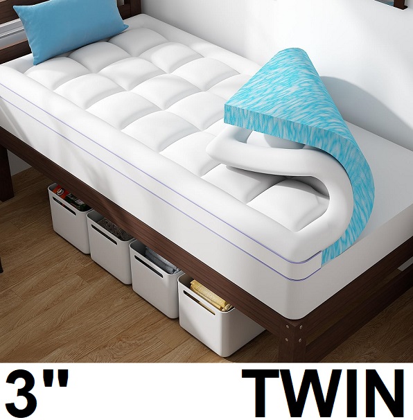 ABENE Dual Layer Memory Foam Mattress Topper - 3" thick - TWIN - white