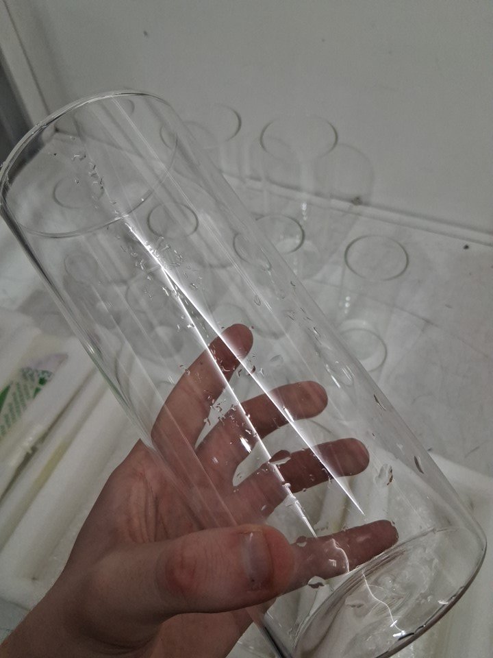 One of the glasses had water droplets in it from previous use, it was only the one glass that looked like it had been used.