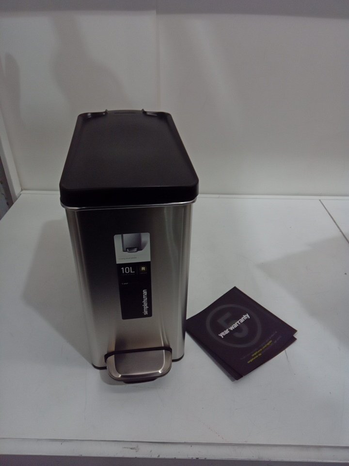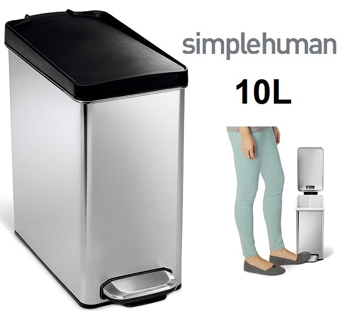 SIMPLEHUMAN STAINLESS STEEL BATHROOM SLIM PROFILE TRASH CAN WITH DISPOSABLE BAGS - 10L - SILVER (MODEL: CW1180)