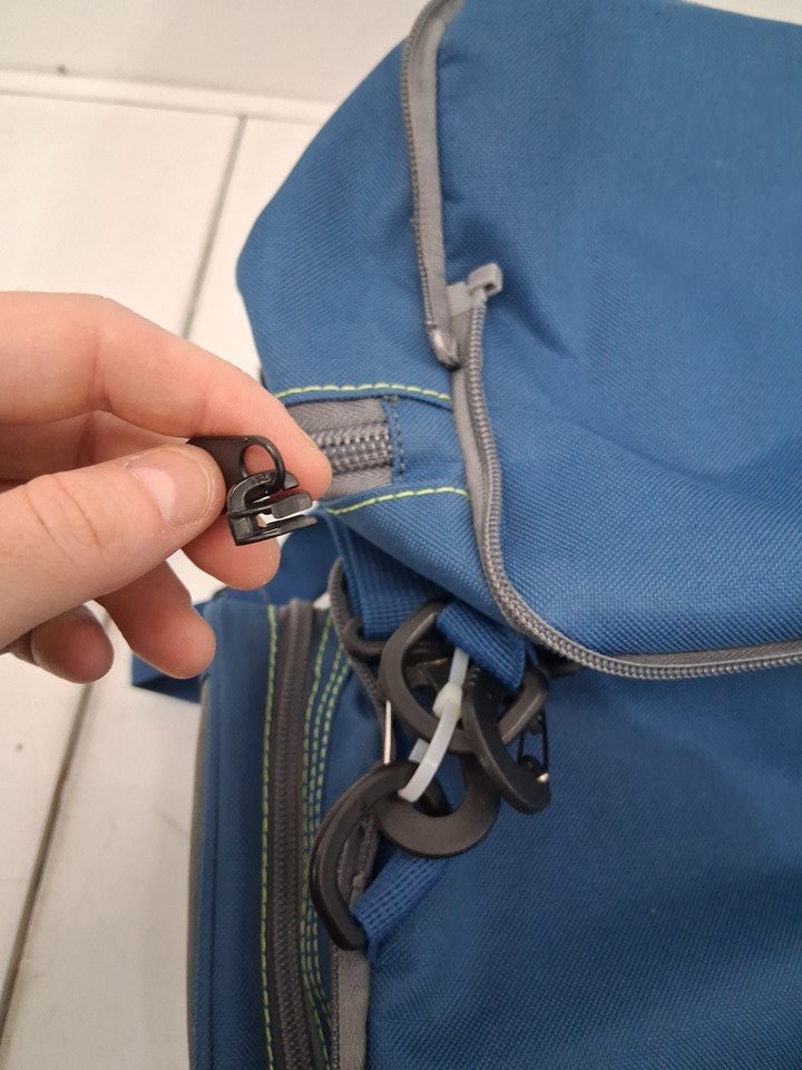 Zipper handle for attaching bottom piece has come off (note: in front pocket)