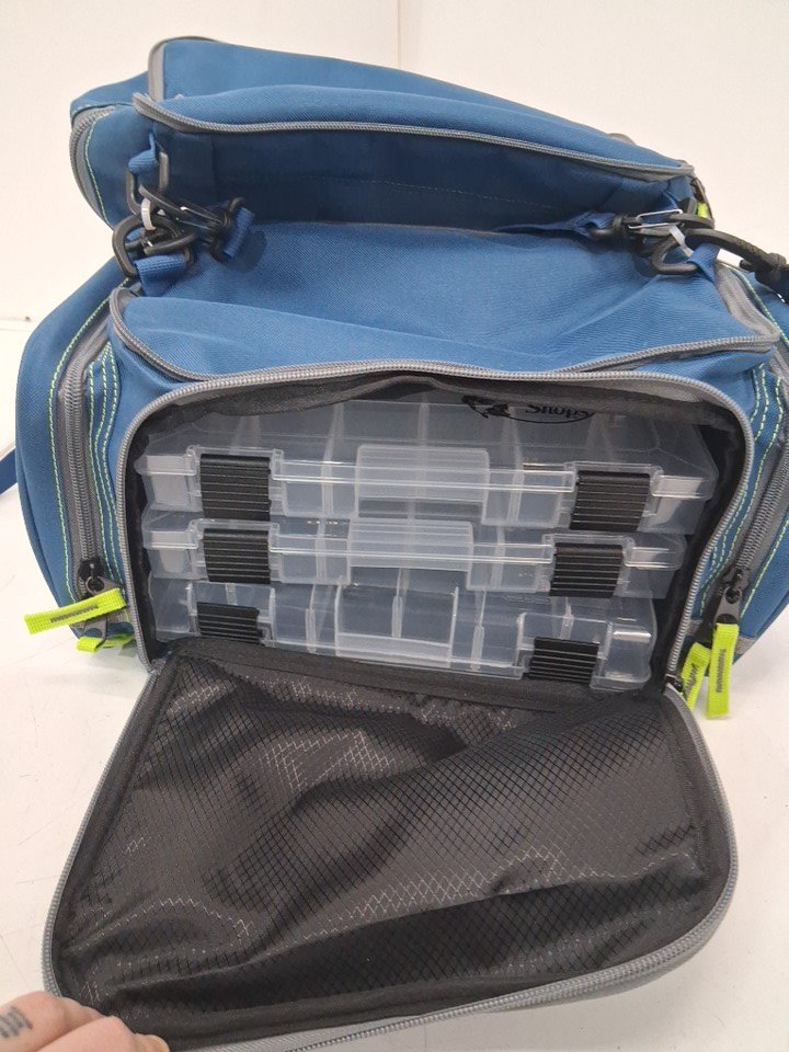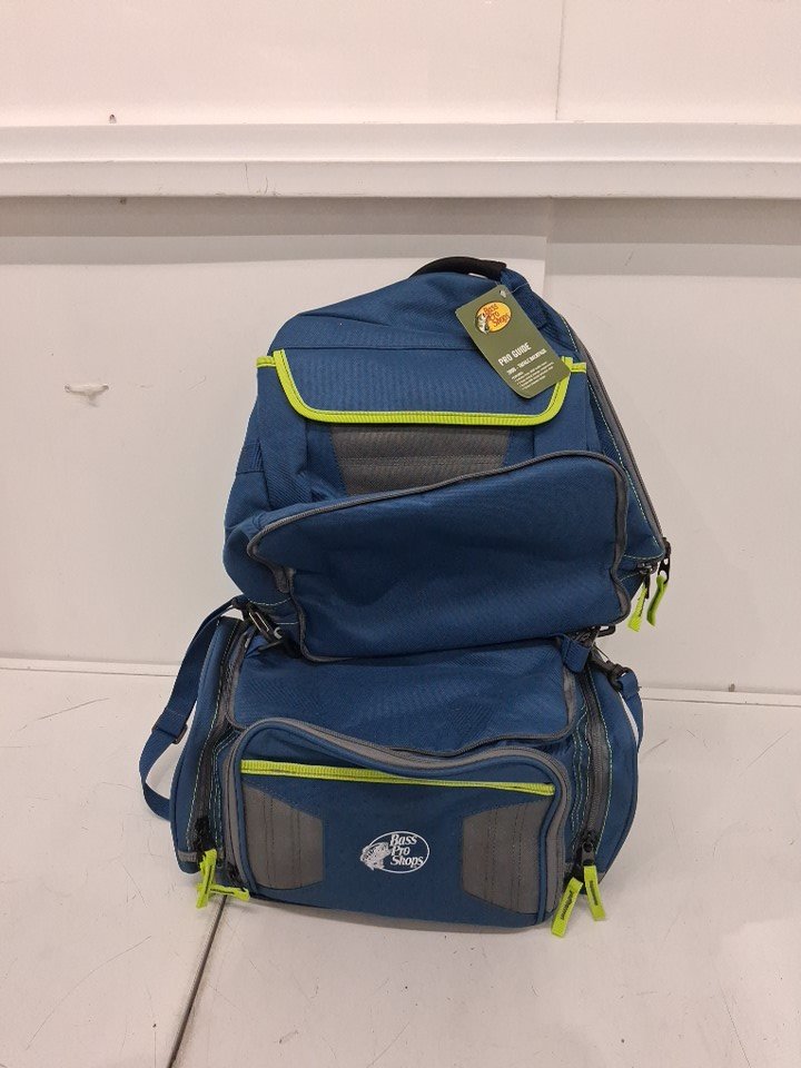 5pc bps Pro Guide 3600 Backpack Tackle Bag with 3600 boxes - 20" - green/blue