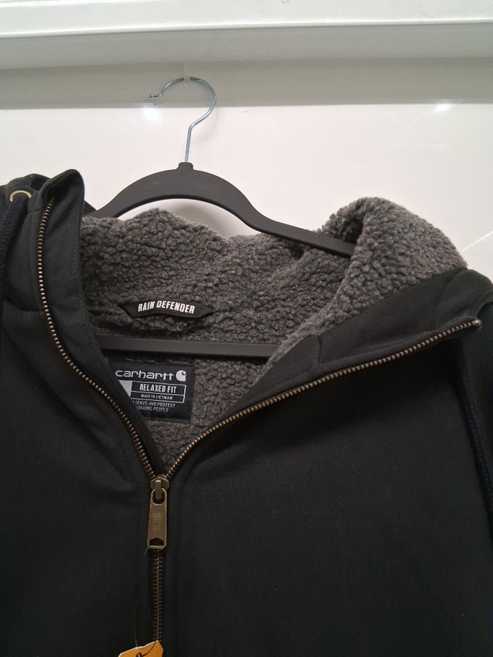 MEN'S CARHARTT RAIN DEFENDER RELAXED FIT MIDWEIGHT SHERPA LINED FULL ZIP SWEATER - Large - BLACK (Style:ts3308-m)