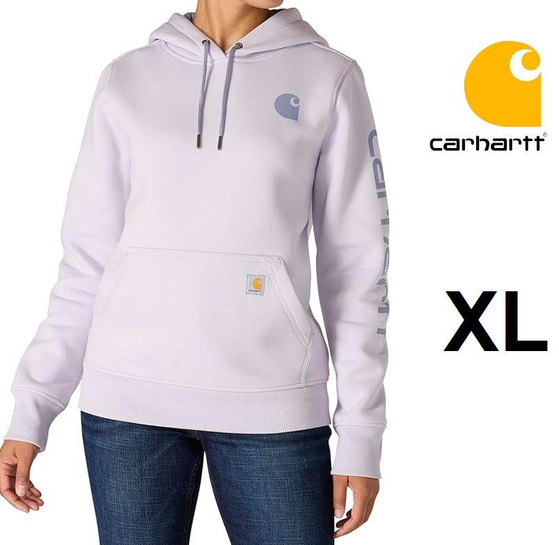 women's CARHARTT relaxed FIT MIDWEIGHT logo sleeve graphic hoodie sweatshirt - extra large - Mica/Wisteria (style: ts0288-w)