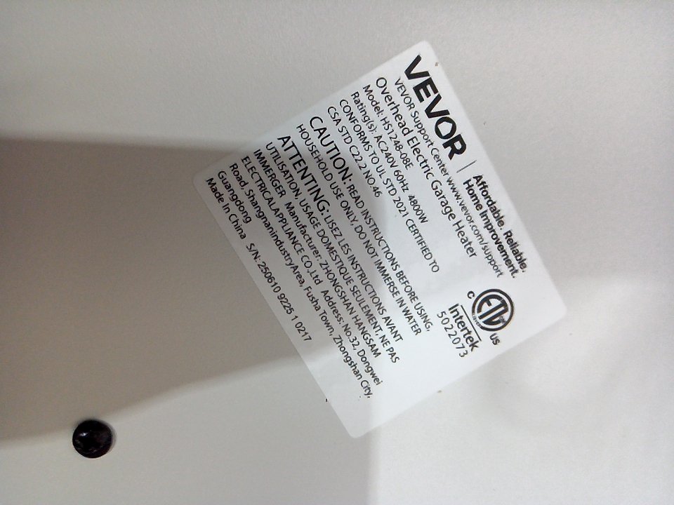 VEVOR Electric Wall/Ceiling Mounted Shop Garage Heater with Remote Control, 10 Hour Timer & Overheat Protection - 4800W - 240V - 12.2" x 12.4" x 11" - White (Model: HS1248-08E)