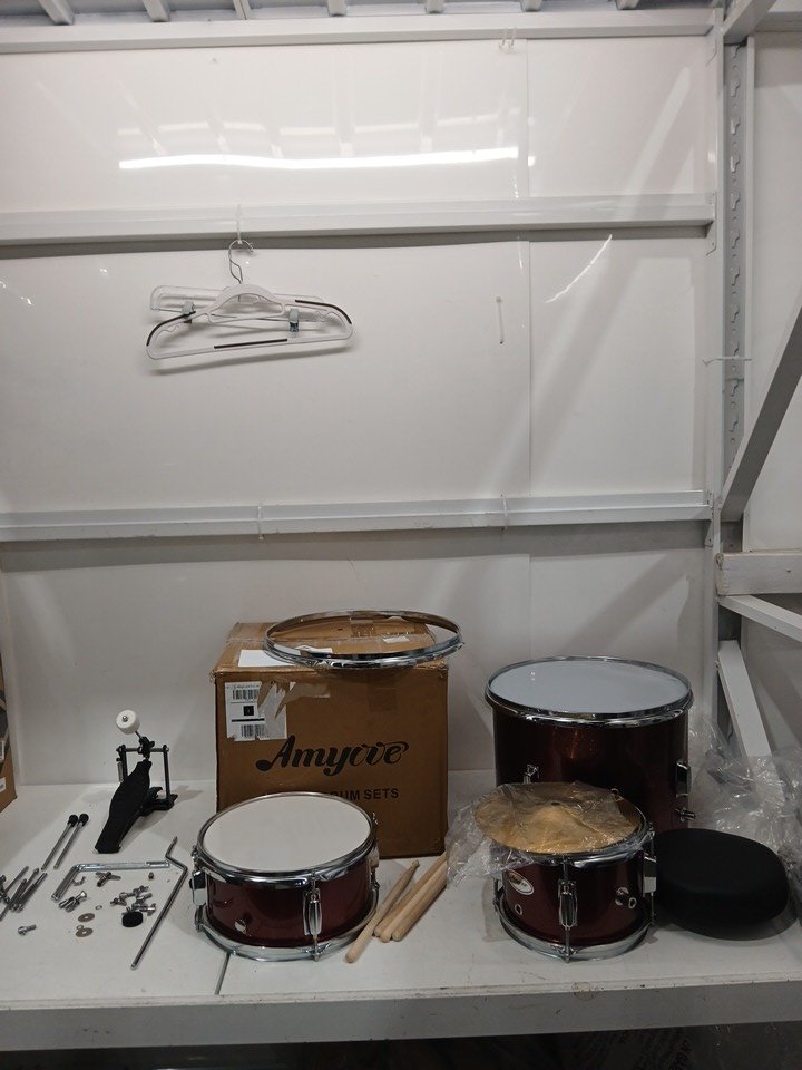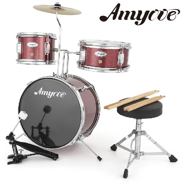 Kid's Amyove Starter Drum Set with Cymbal, Pedal and Throne Stool - Ages 5-12 - Red (Model: AD-150)