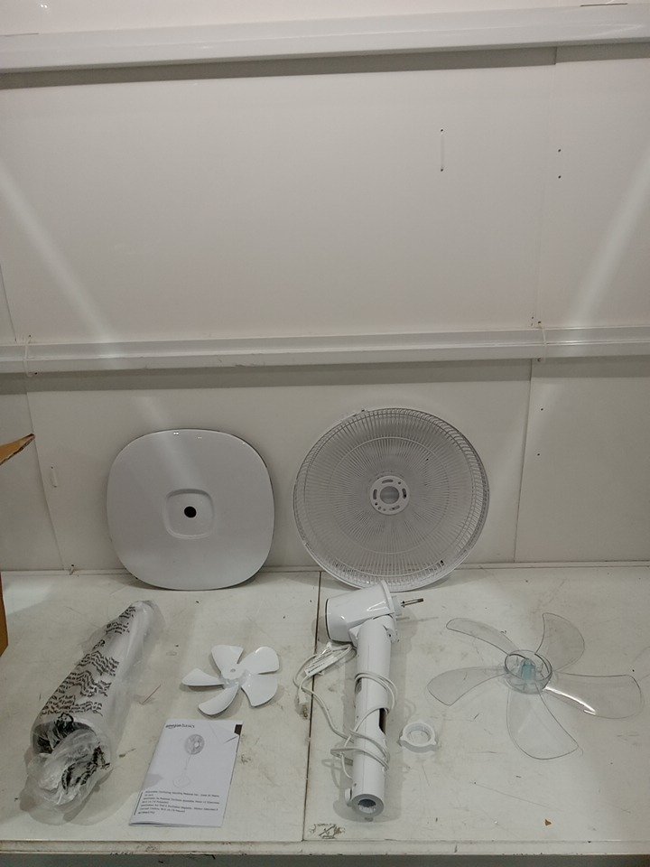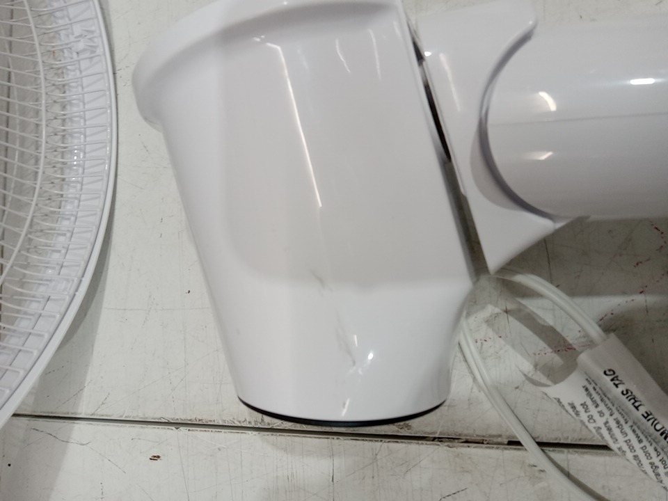 The remote is missing from the original packaging. There are scratch marks on the side of the frame due to shipping. Tested for power and motor function only. (Please see photos)