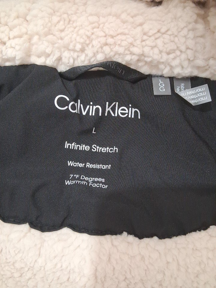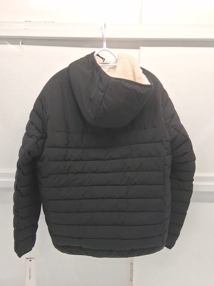 men's calvin klein sherpa lined hooded ebony puffer jacket - large - black (style: cm155780)