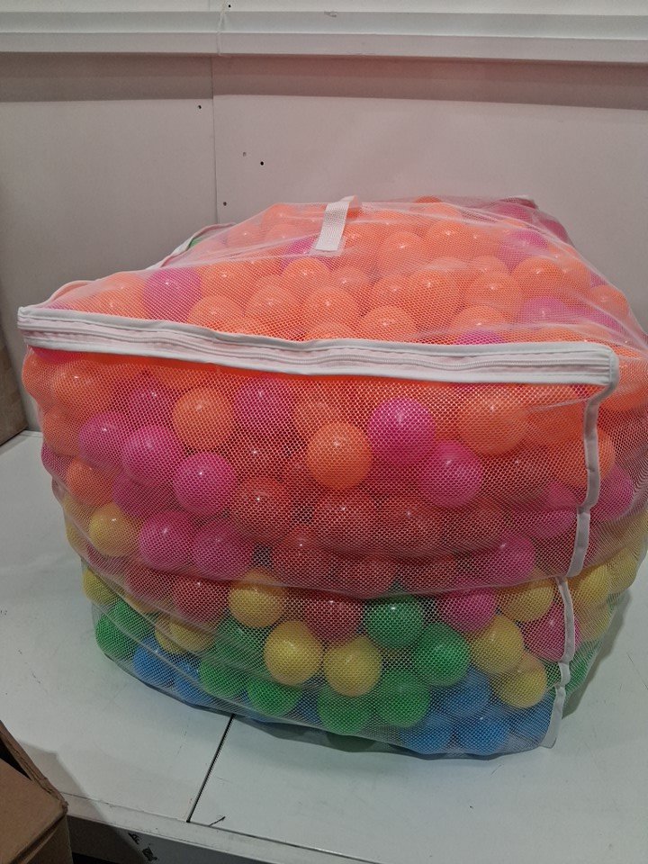 1000PK AMAZON BASICS PLASTIC PIT BALLS WITH STORAGE BAG - BPA FREE - 2.3" - BRIGHT COLORS