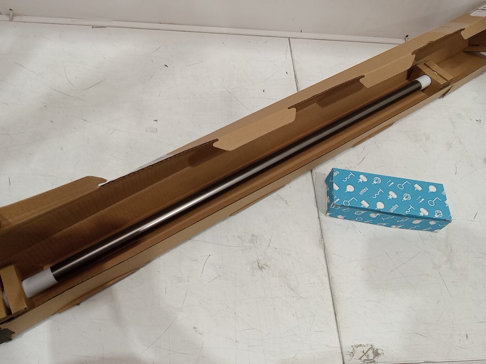 UMBRA BLOK 1" CURTAIN ROD WITH FAUX-WOOD FINIALS - ADJUSTS 36"-72" - GUNMETAL GREY/WOODGRAIN