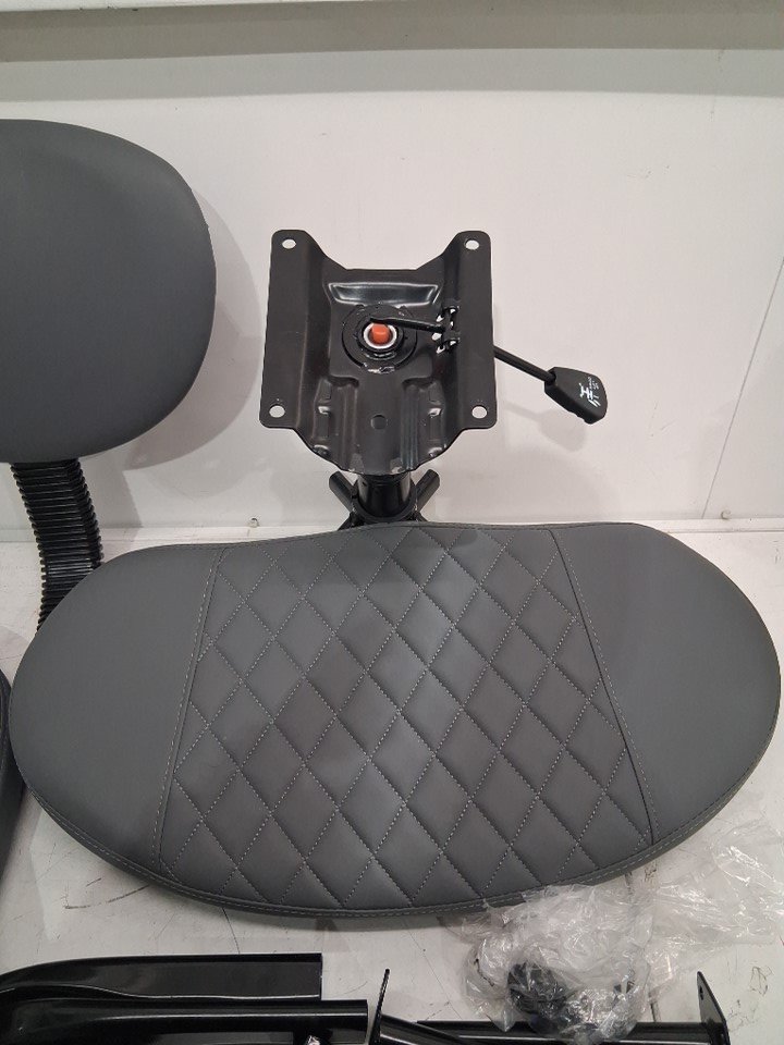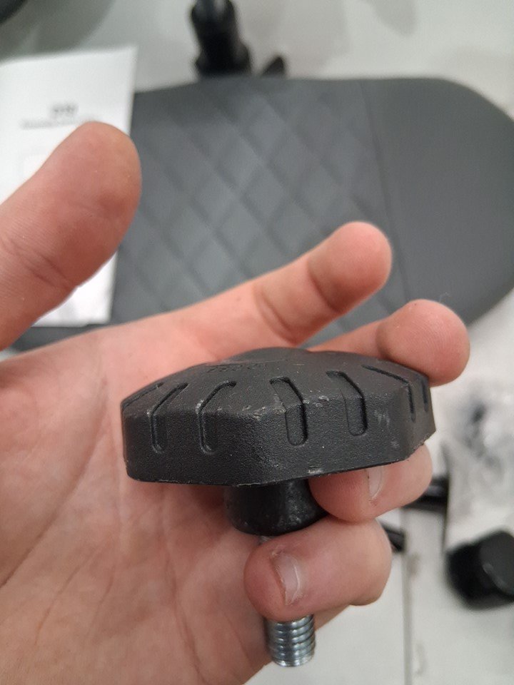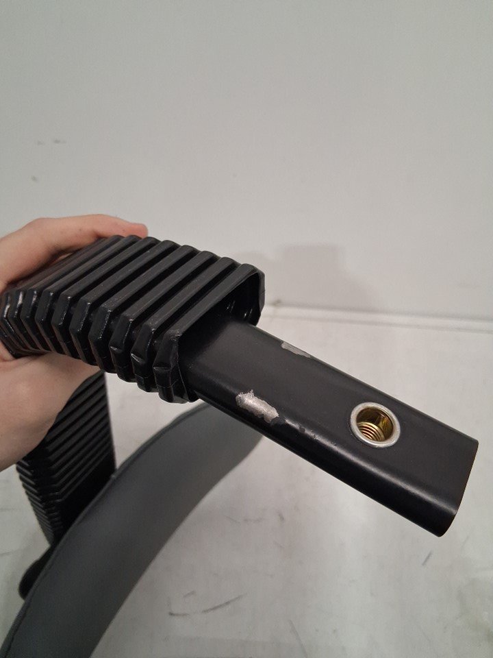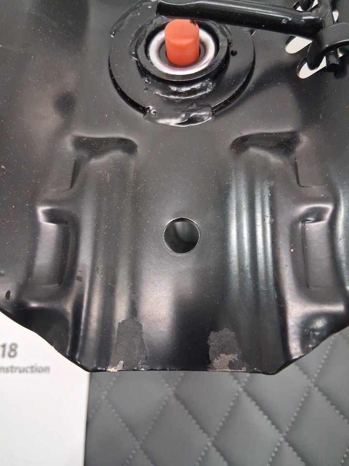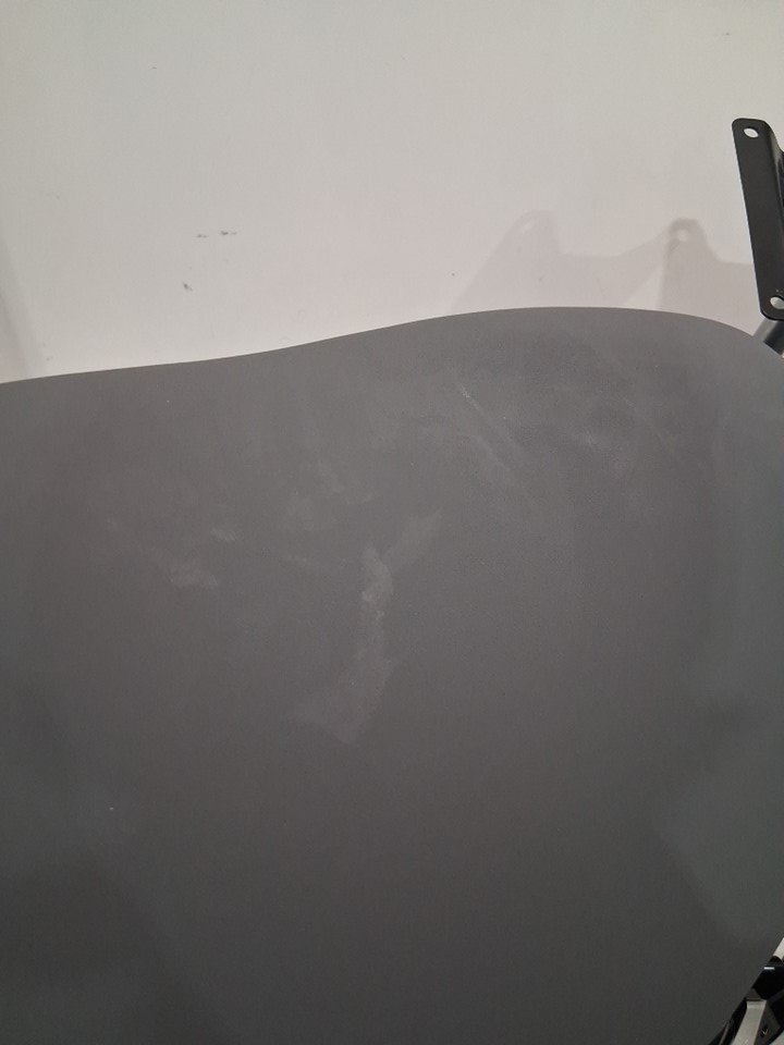 There are some paint chips on some of the poles from previously assembly, the backrest has some light smudge marks on it and the wheels show signs of previous use.