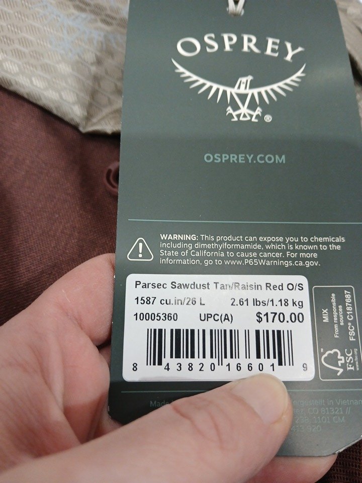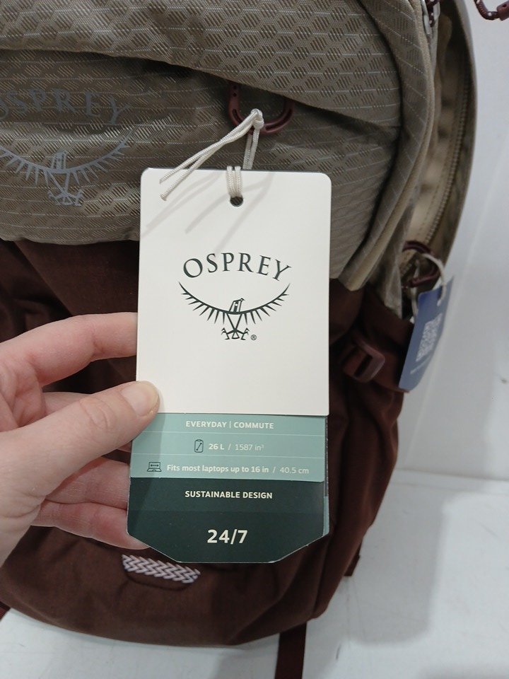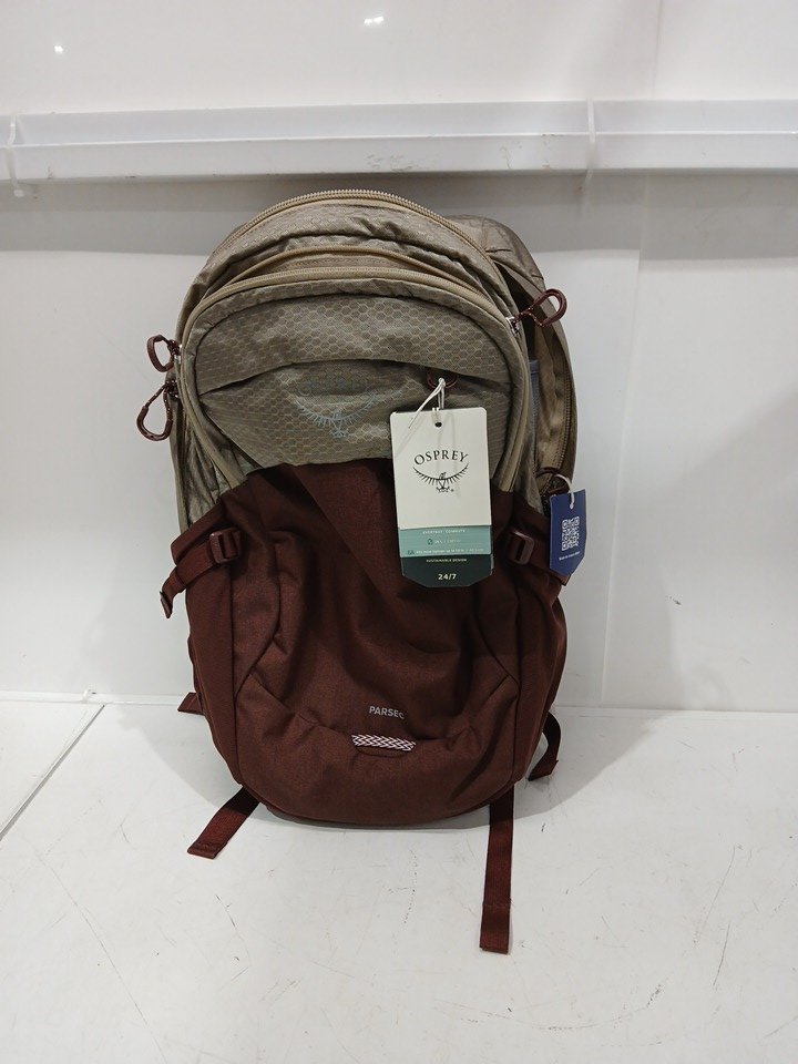 OSPREY PARSEC LAPTOP BACKPACK - 26L FITS UP TO 16" LAPTOPS - sawdust tan raisin red - (MODEL: 10005360)