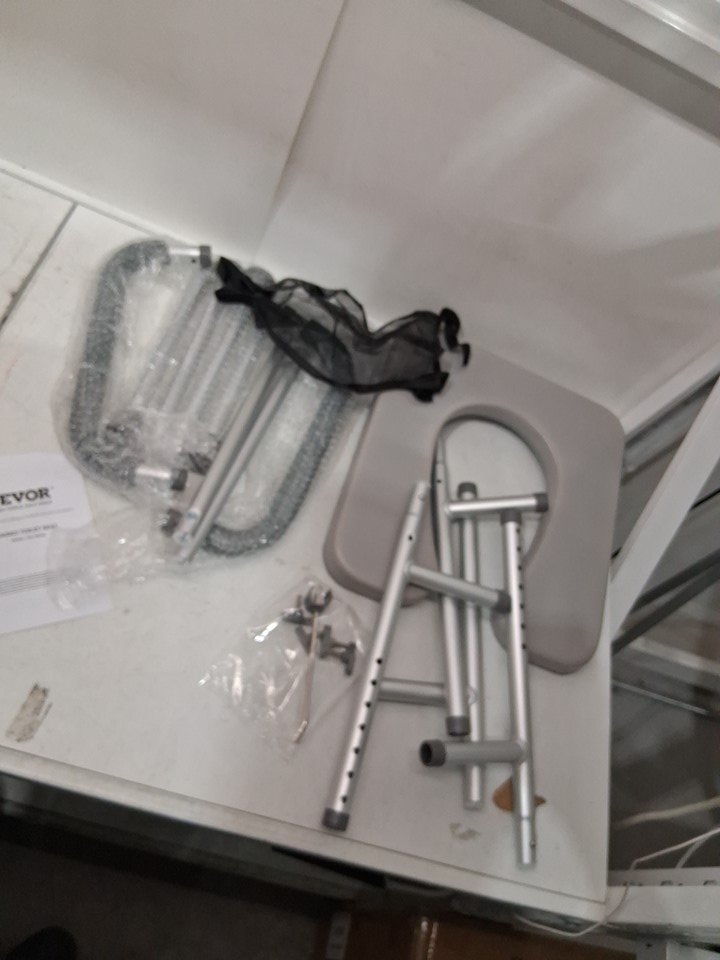 VEVOR universal Raised Toilet Seat with 7-Position Height Adjustment and Comfort Padded Aluminum Frame - 19.3" - 25.2" - 350lbs Weight Capacity - grey (model: FBL760598)