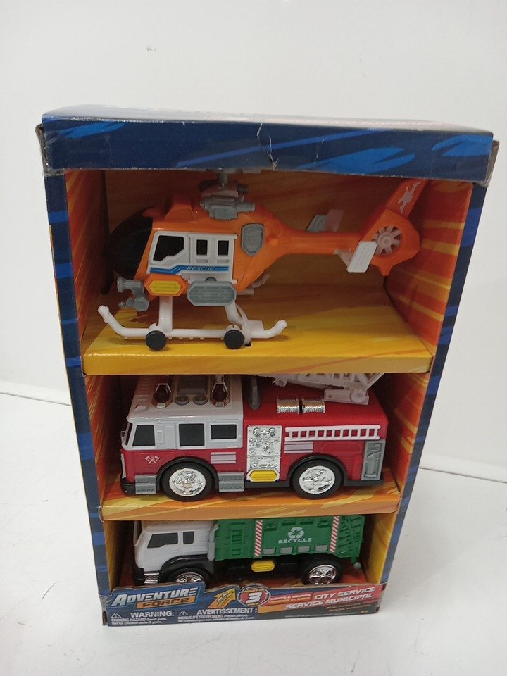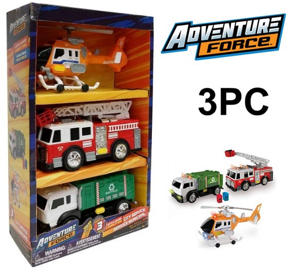 3PC City Service Mini Vehicles WITH Lights & Sounds - Helicopter/Fire Truck/Recycling Truck