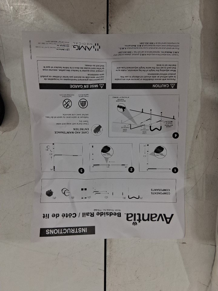 AVANTIA ADJUSTABLE METAL CURVED HOME BEDSIDE RAIL AND GRAB BAR - WHITE (MODEL: 775-640)