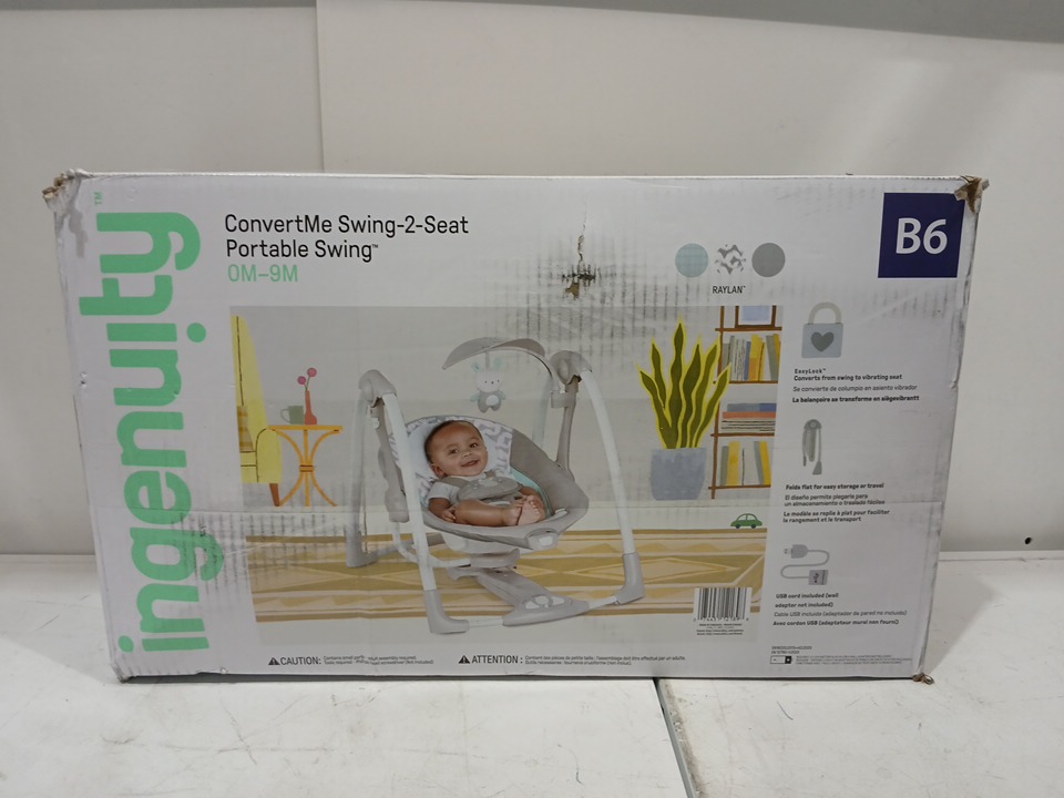 INGENUITY ConvertMe 2-in-1 compact portable plug-in automatic baby swing - 6lbs to 20lbs - grey (model: 12189-es)