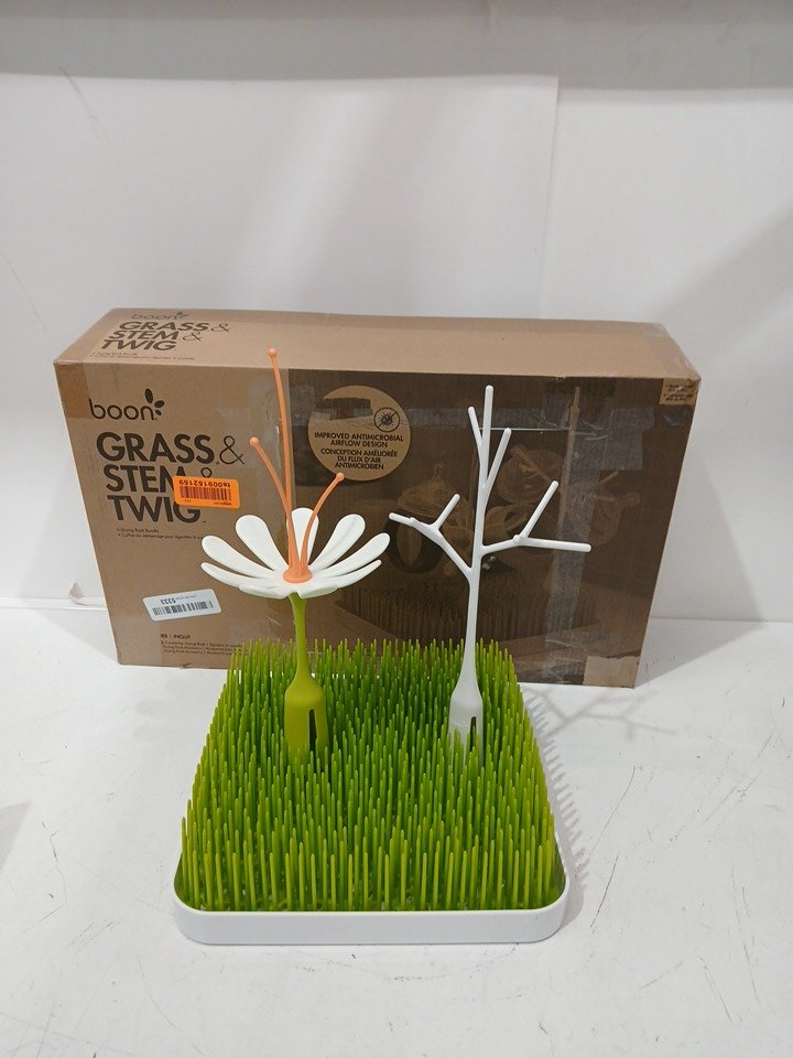 BOON GRASS BABY BOTTLE COUNTERTOP DRYING RACK W/ STEM & TWIG - UP TO 6 BOTTLES - GREEN/WHITE (MODEL: B11036)