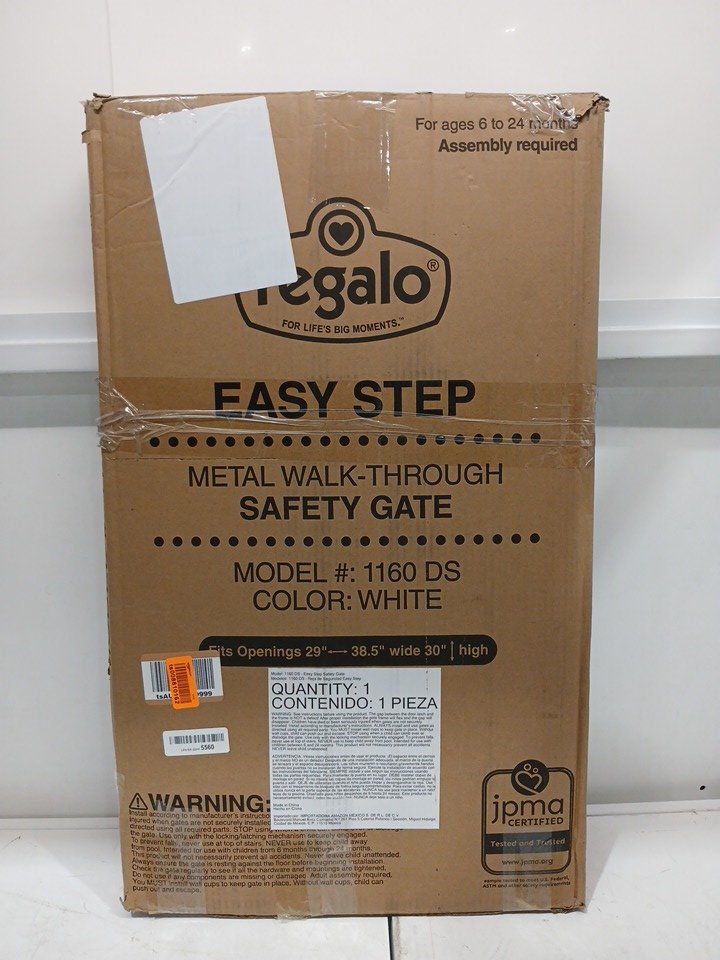 REGALO EASY-STEP METAL WALK-THROUGH SAFETY GATE - 30" x 29'' to 38.5'' - WHITE - (MODEL: 1160DS)