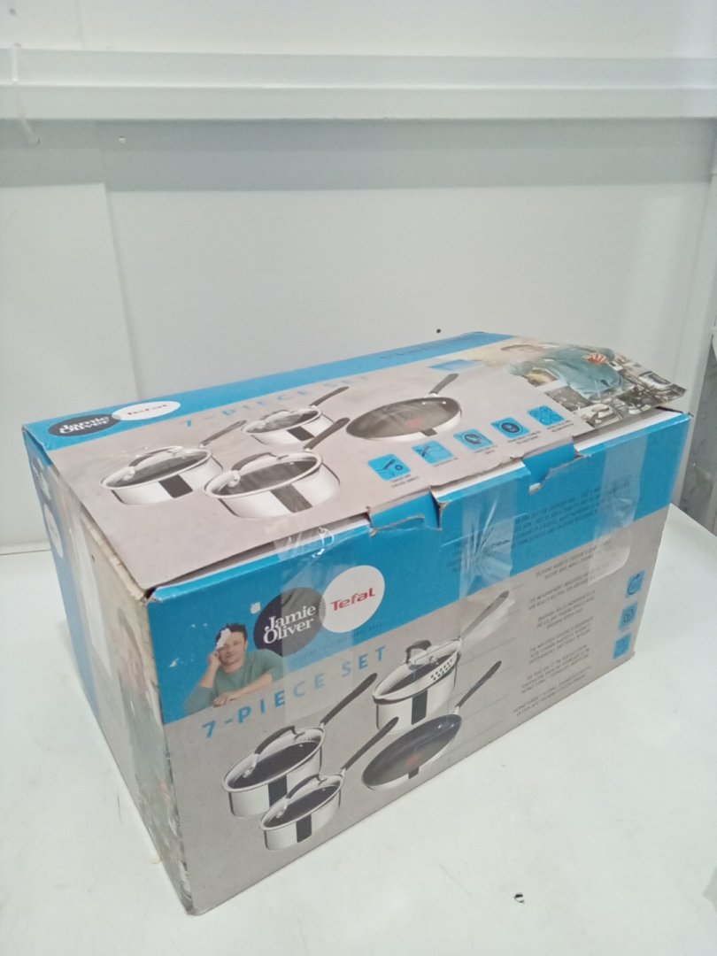 7pc jamie oliver x tefal stainless steel everyday cookware set - silver/black