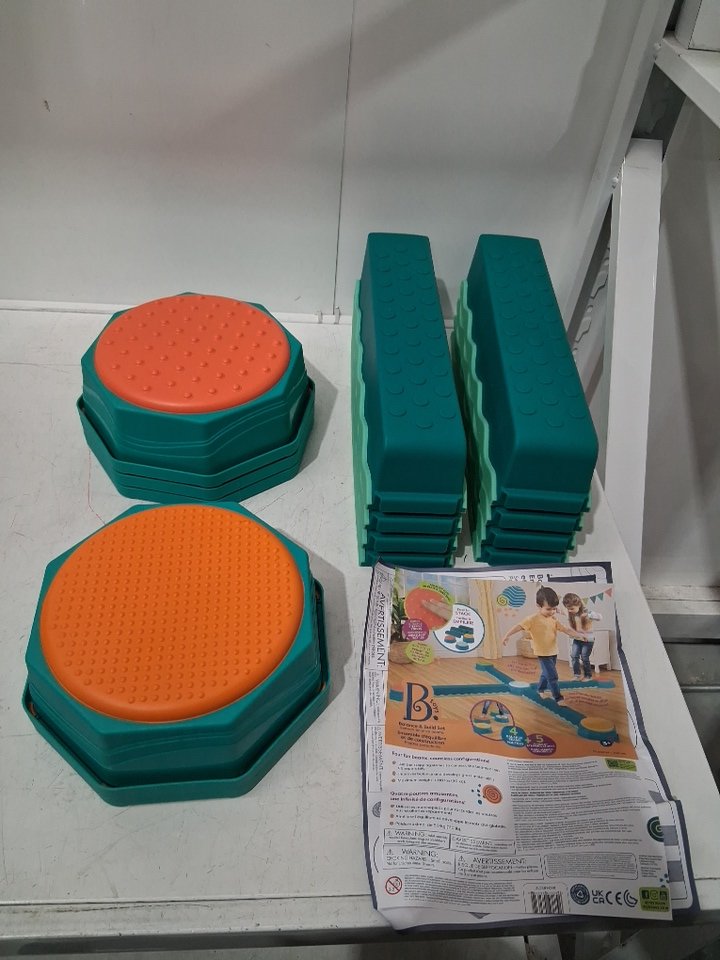13pc B. BATTAT TOYS BALANCE BEAM STEPPING STONES ACTIVE PLAY SET FOR TODDLERS AND KIDS - BALANCE AND BUILD SET - BLUE/MULTICOLOUR (model:bx2482c1z)