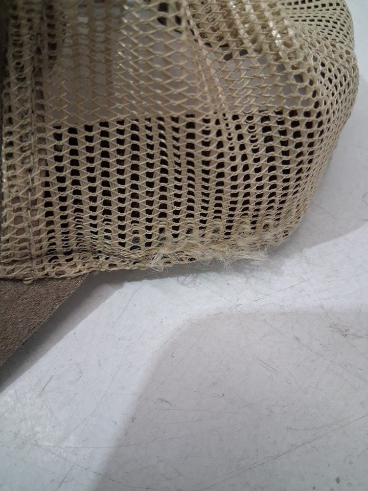Distress to mesh near front of hat (See photos).