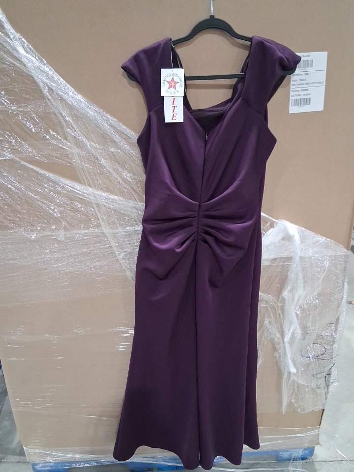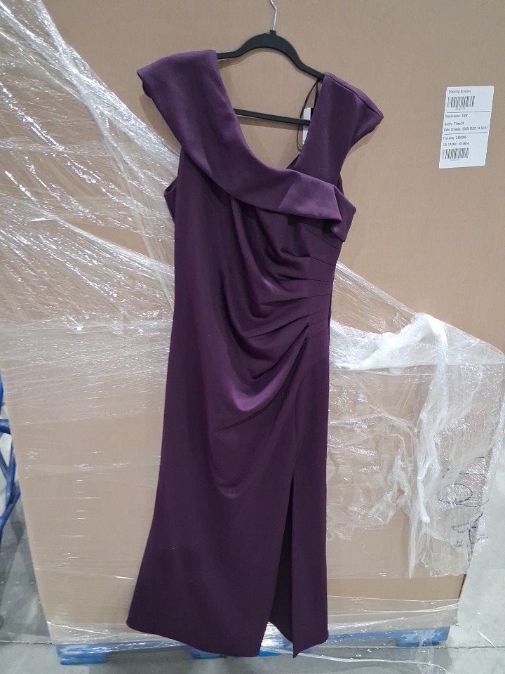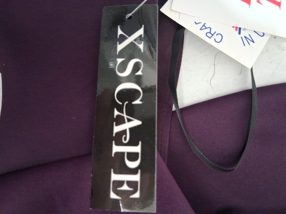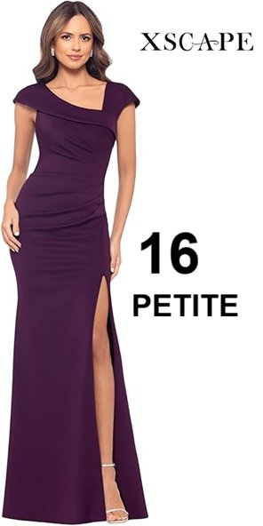 womens xscape asymmetrical neck cap sleeve runched high slit gown/dress - 16 petite - Plum - (style: 6414xpa)