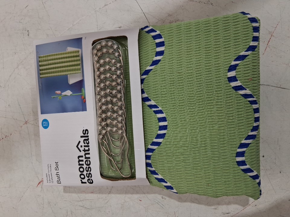 room essentials FABRIC SHOWER CURTAIN bath SET - 72" x 72" - green/blue