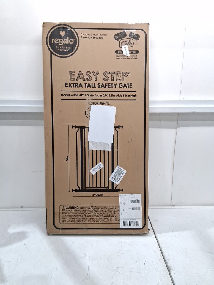 REGALO EASY STEP WALK-THRU METAL SAFETY GATE - 36" x 29" to 36.5" - WHITE (MODEL: 1166HDS)