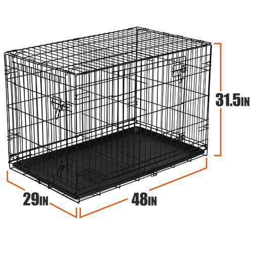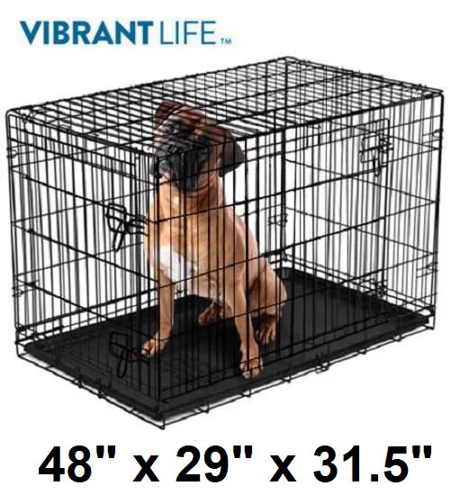 Vibrant Life Double-Door Folding Dog Crate - 48" x 29" x 31.5" - BLACK (MODEL: wm48-2)