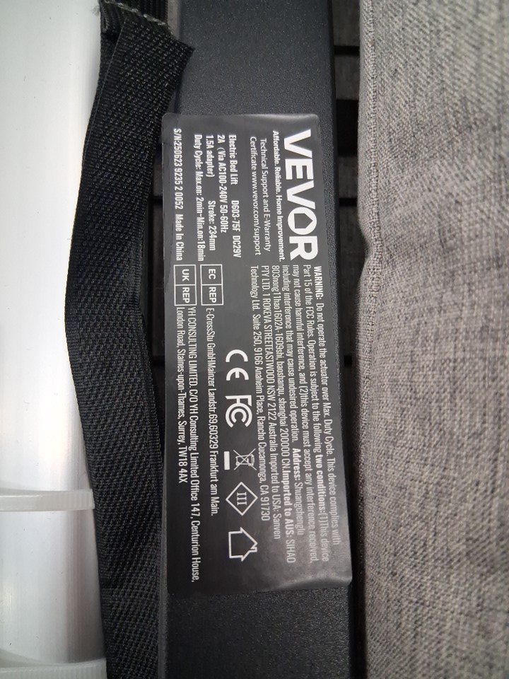 VEVOR Electric Lifting Backrest Adjustable with Guardrail & Pouch - 300 lbs - 4-68° - grey (model: d603-75f)