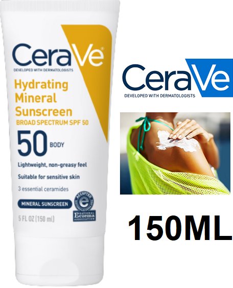 CERAVE HYDRATING MINERAL SUNSCREEN BROAD SPECTRUM SPF 50 - LIGHTWEIGHT, NON-GREASY SUITABLE FOR SENSITIVE SKIN - 150ML