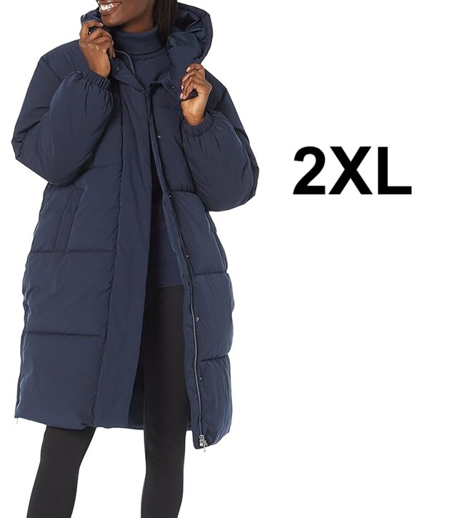Women's Amazon Essentials Oversized Long Puffer Jack - 2XL - Black (Style: AEWP30284F23)