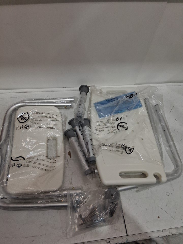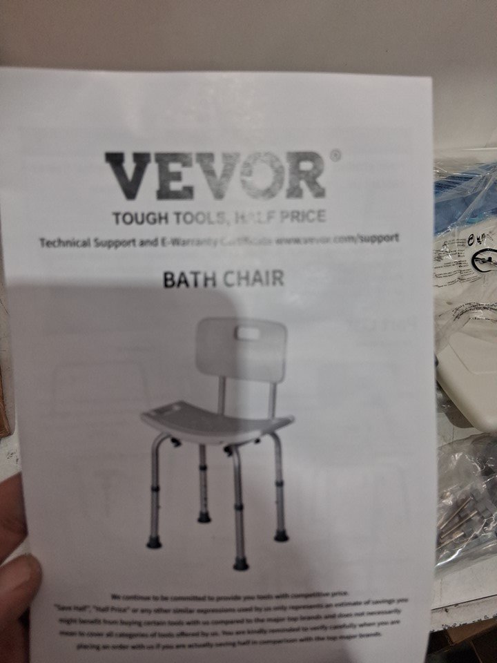 vevor non-slip adjustable bathroom chair with shower head holder and mesh storage bag - white - (model: 301A)