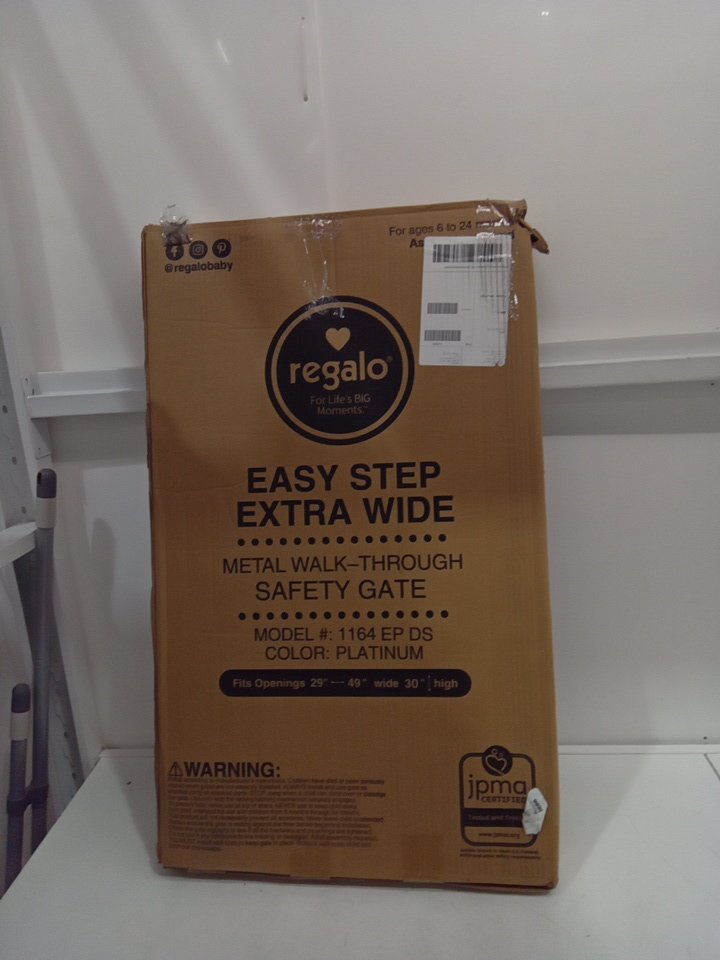 REGALO EASY STEP EXTRA WIDE METAL SAFETY GATE - 30" x 29" to 49" - platinum GREY (MODEL: 1164EPDS)