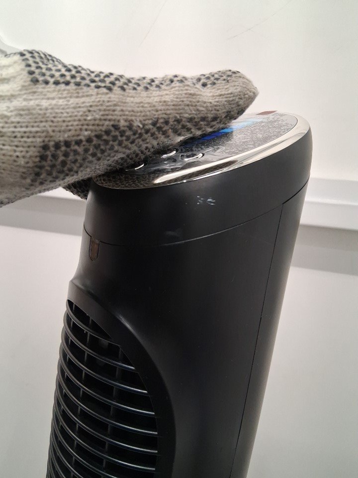 Tested for power. Item has minor white marks and makes some noise when fan is started, may have something stuck inside.