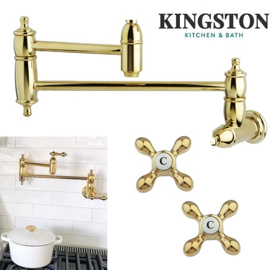 KINGSTON BRASS RESTORATION WALL MOUNT POT FILLER KITCHEN FAUCET, POLISHED BRASS (MODEL: KS3102AL)