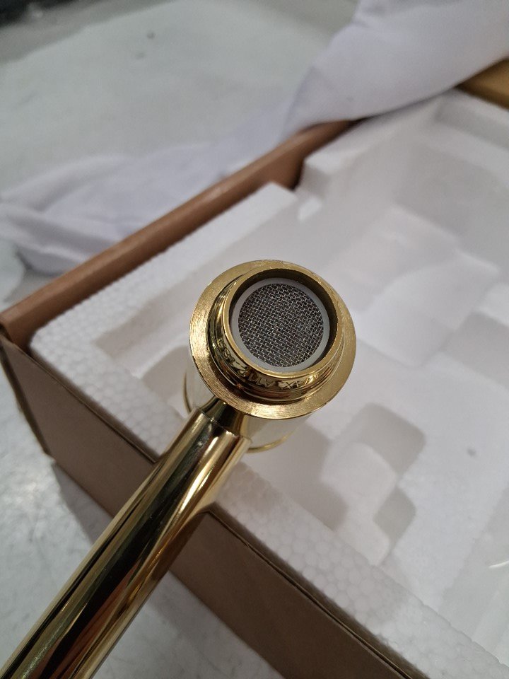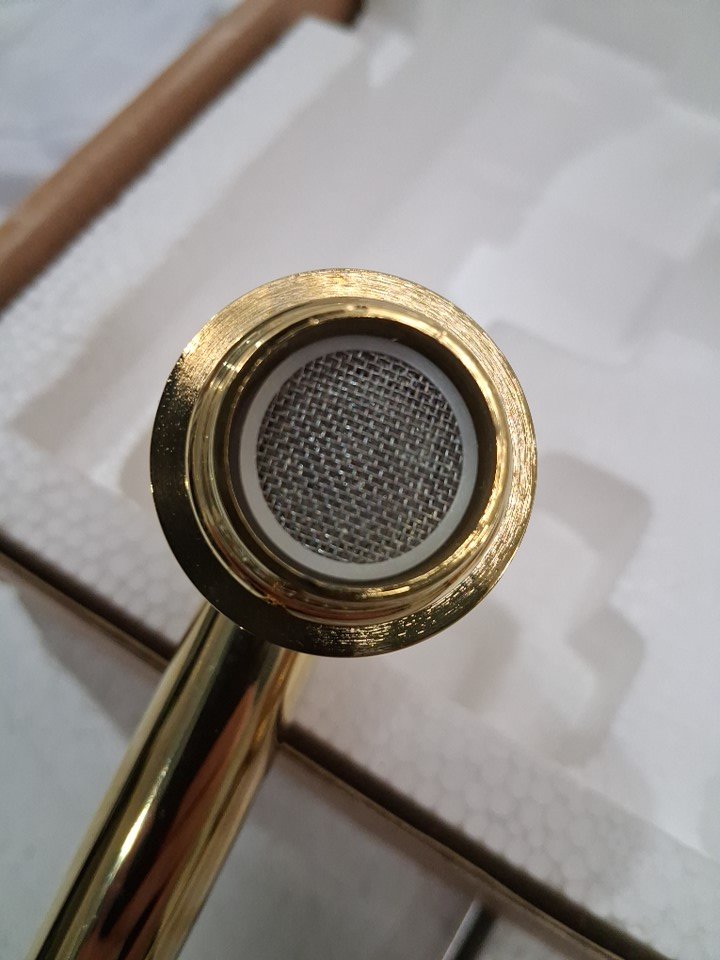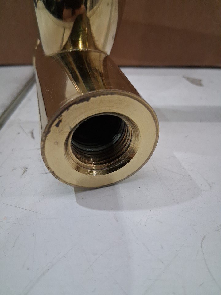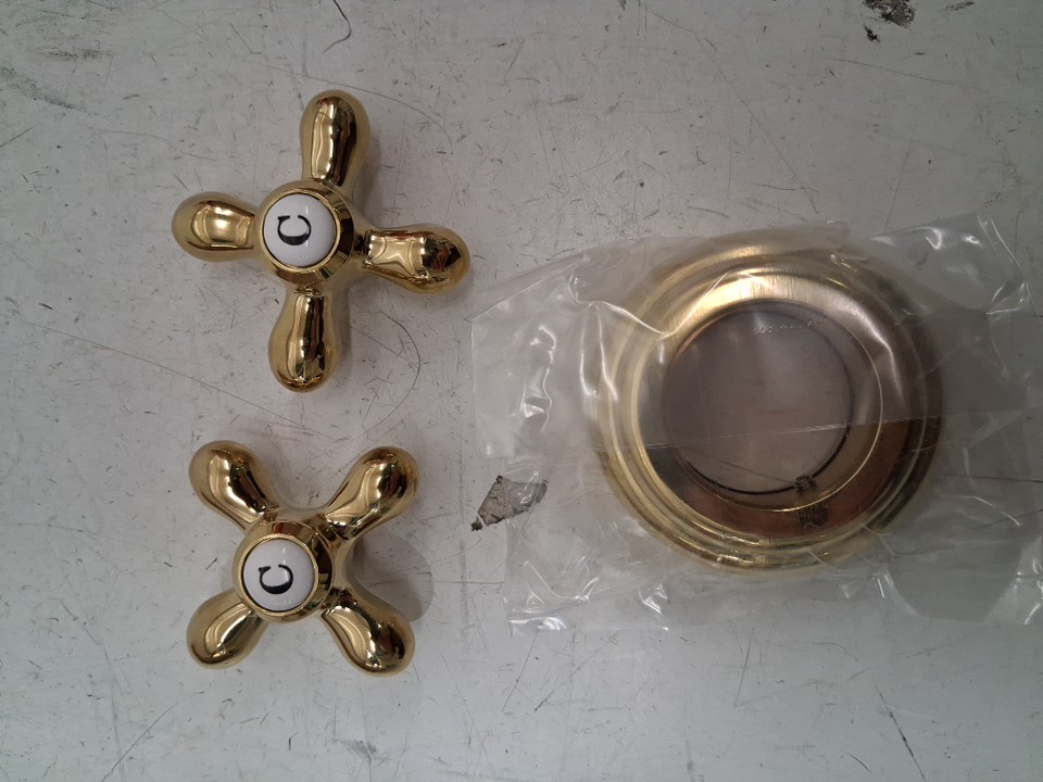 item has small amount of residue in spout and small amount of wear around connection spot PLEASE NOTE: this item comes with two COLD taps however if you wish to purchase the hot labeled tap, replacements are sold on the Kingston brass website.